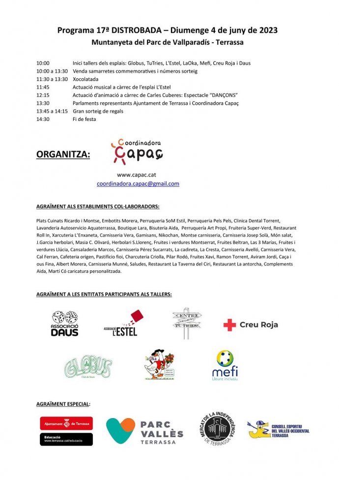 Parc Vallès col·labora amb la Distrobada, organitzada per la Coordinadora Capaç, integrada per les AMPA de les quatre escoles d'educació especial de Terrassa i per famílies de joves i adults amb discapacitat intel·lectual que ja estan a centres ocupacionals o centres de dia. El nombre de famílies que, actualment, la integren és de més de tres-centes.