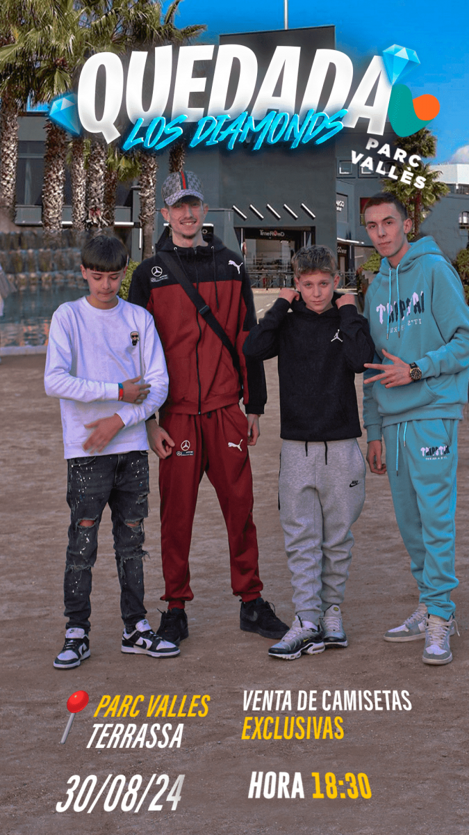 Tienes ganas de conocer en persona los miembros del Team Diamond? Esta es tu oportunidad! Únete a nosotros por una tarde llena de diversión y emoción con Marbi, Heredia, Alexiba y Nil, los jóvenes influencers que están triunfando a TikTok e instagram. Además, podrás conseguir una de sus exclusivas camisetas, disponibles solo en este acontecimiento. No te lo pierdas!