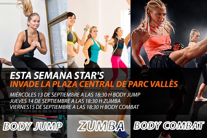 No os perdáis las 3 súper clases que os hemos preparado en la Plaça Central de Parc Vallès. La mejor forma de disfrutar del deporte, de las actividades dirigidas, de los últimos días del verano y por supuesto en compañía de tod@s vosotr@s: nuestr@s Star's!